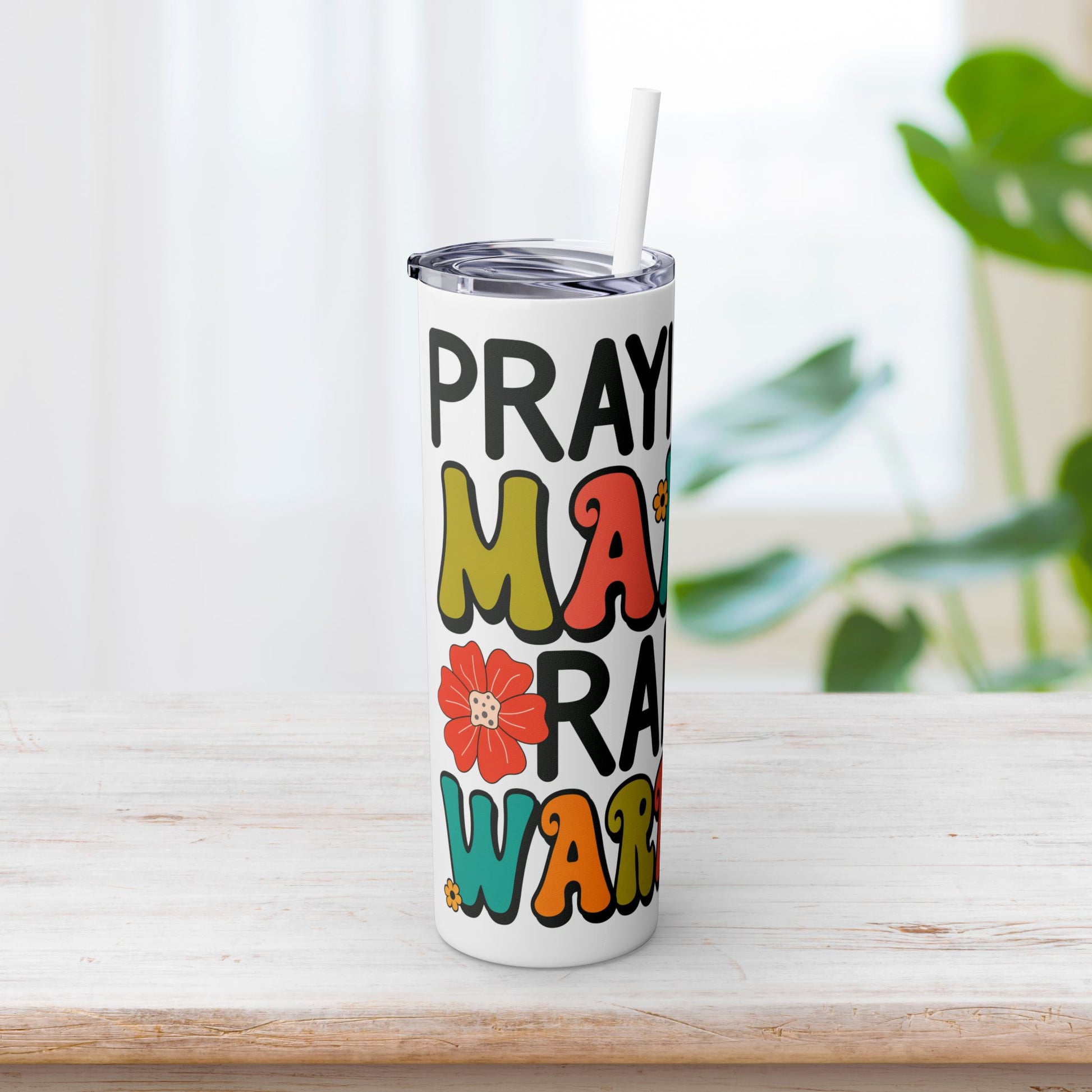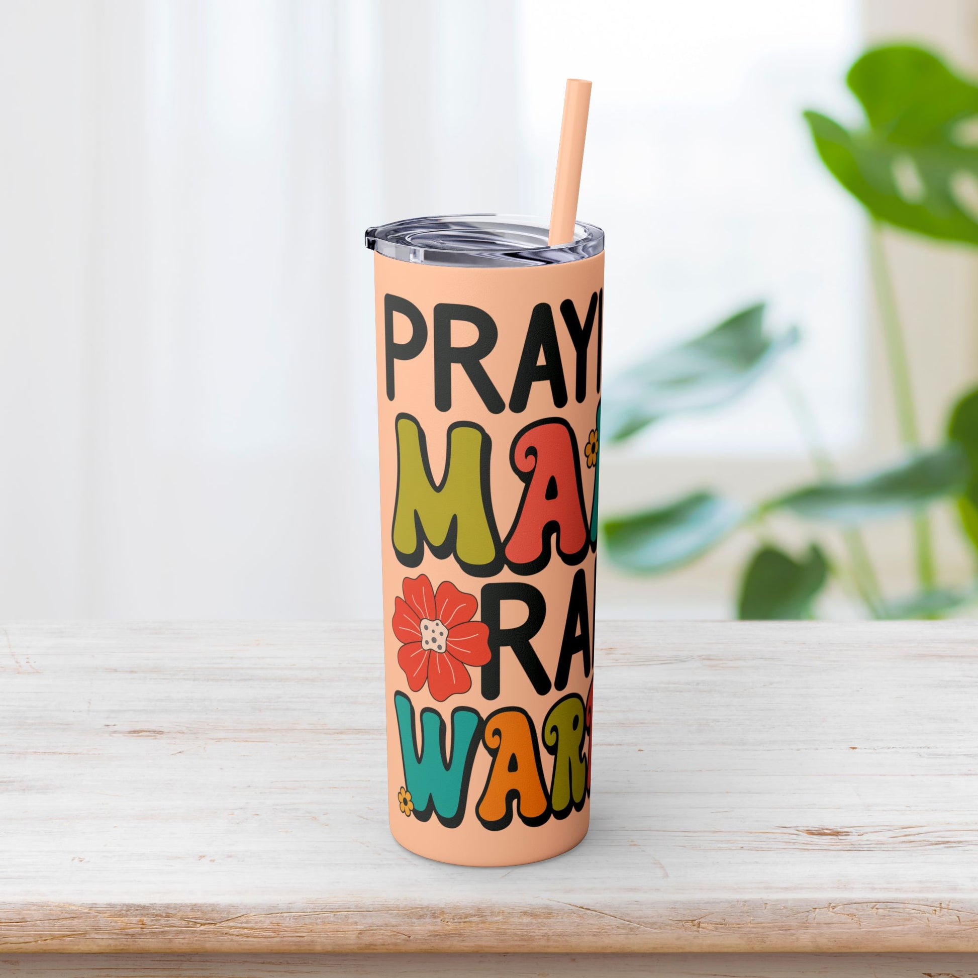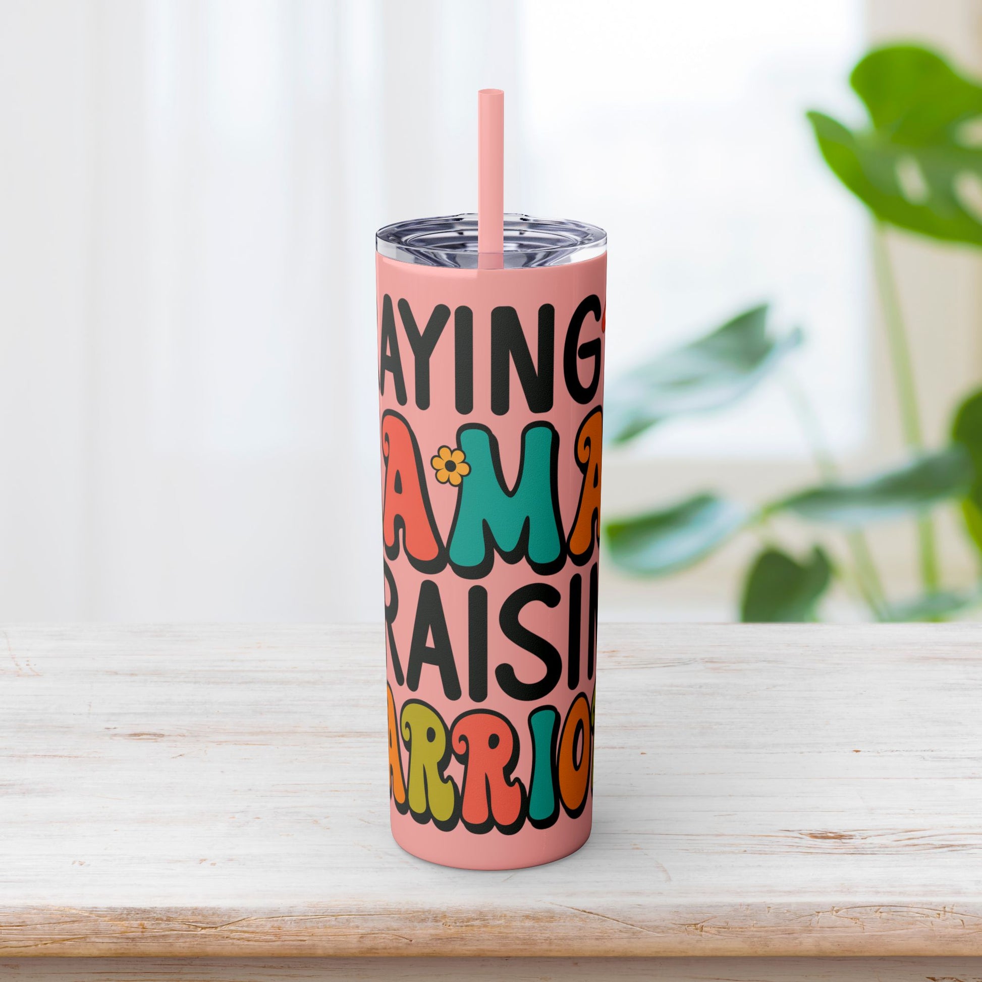 Praying Mama Raising Warriors Skinny Tumbler with Straw - 20oz