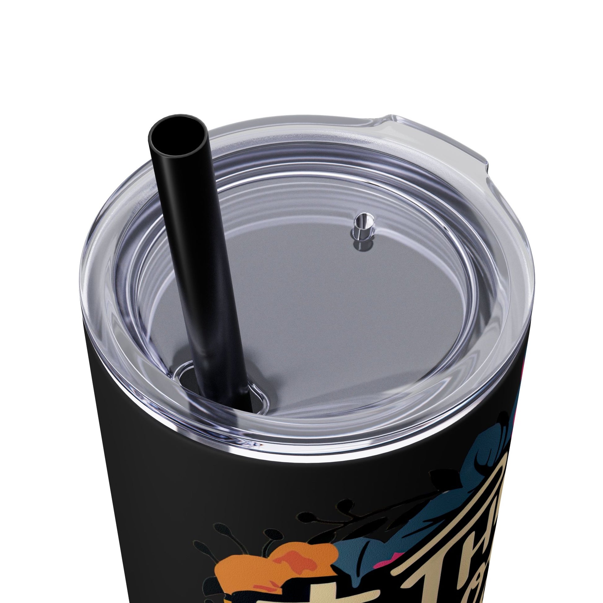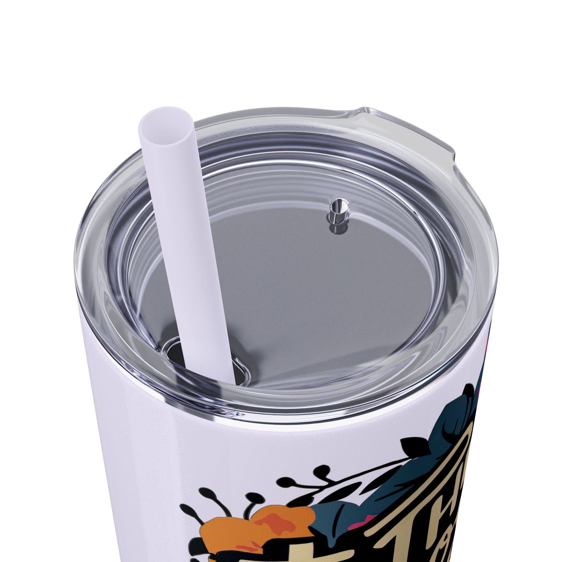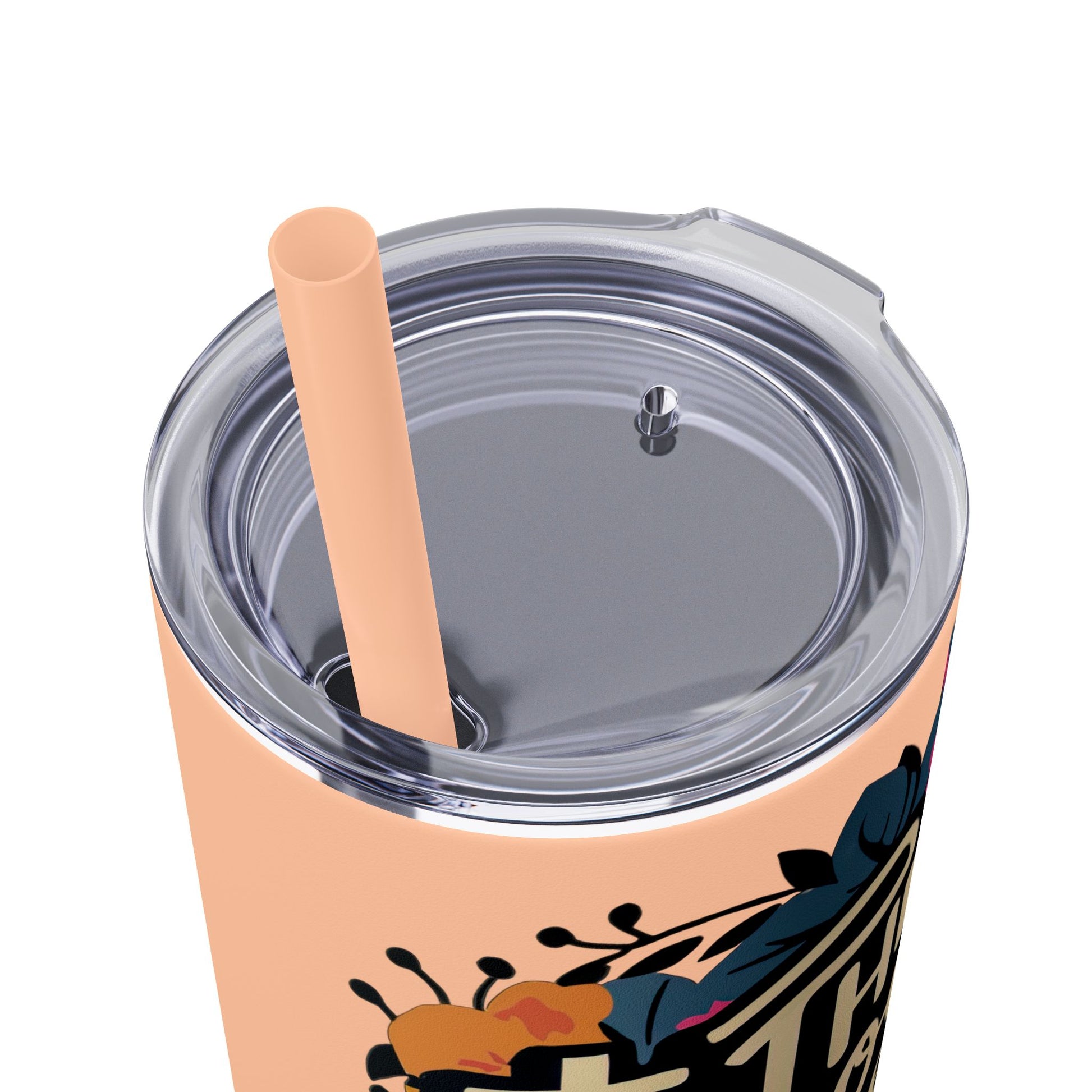 Featuring a generous 20oz capacity, this tumbler offers ample space for your favorite beverages, while its sleek and tapered design with a slim profile makes it effortlessly portable for sipping on the go. Choose between a matte or glossy finish to match your personal style, and enjoy the added convenience of a plastic press-on lid with a color-matching straw, ensuring mess-free sipping wherever you are.
