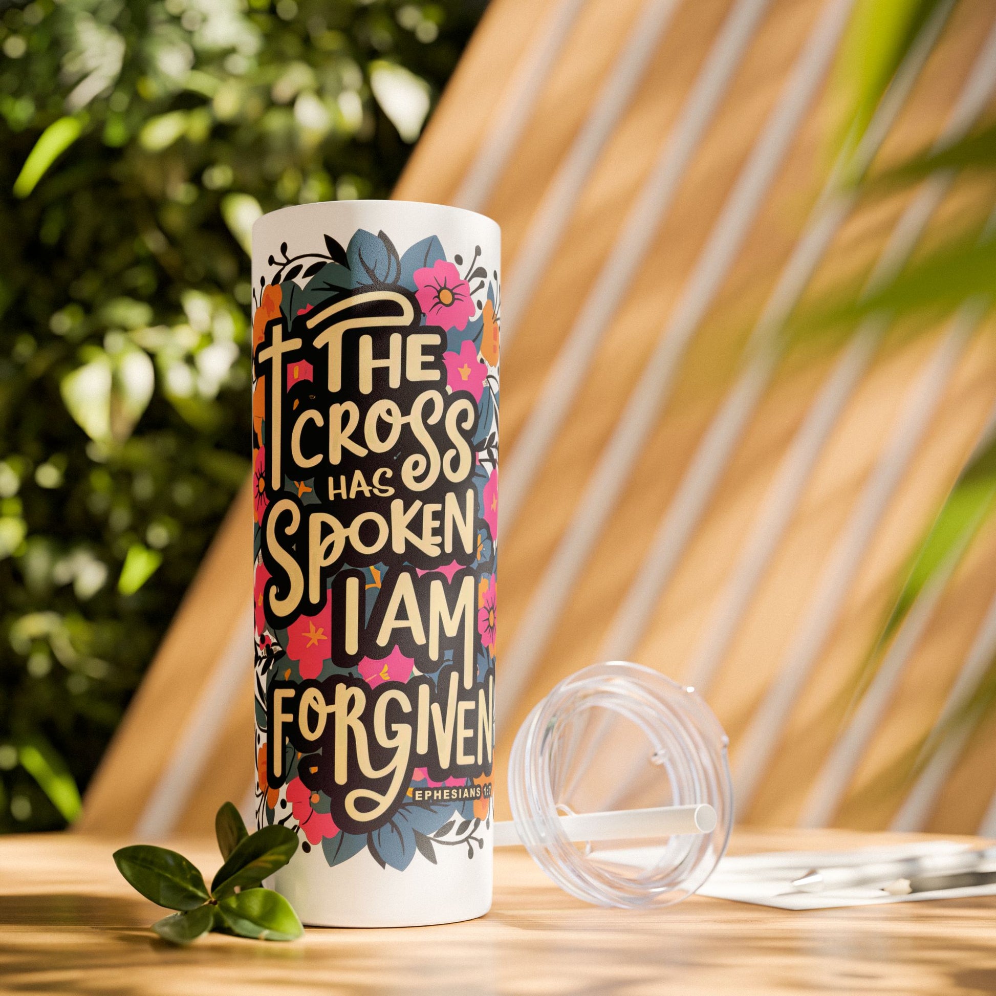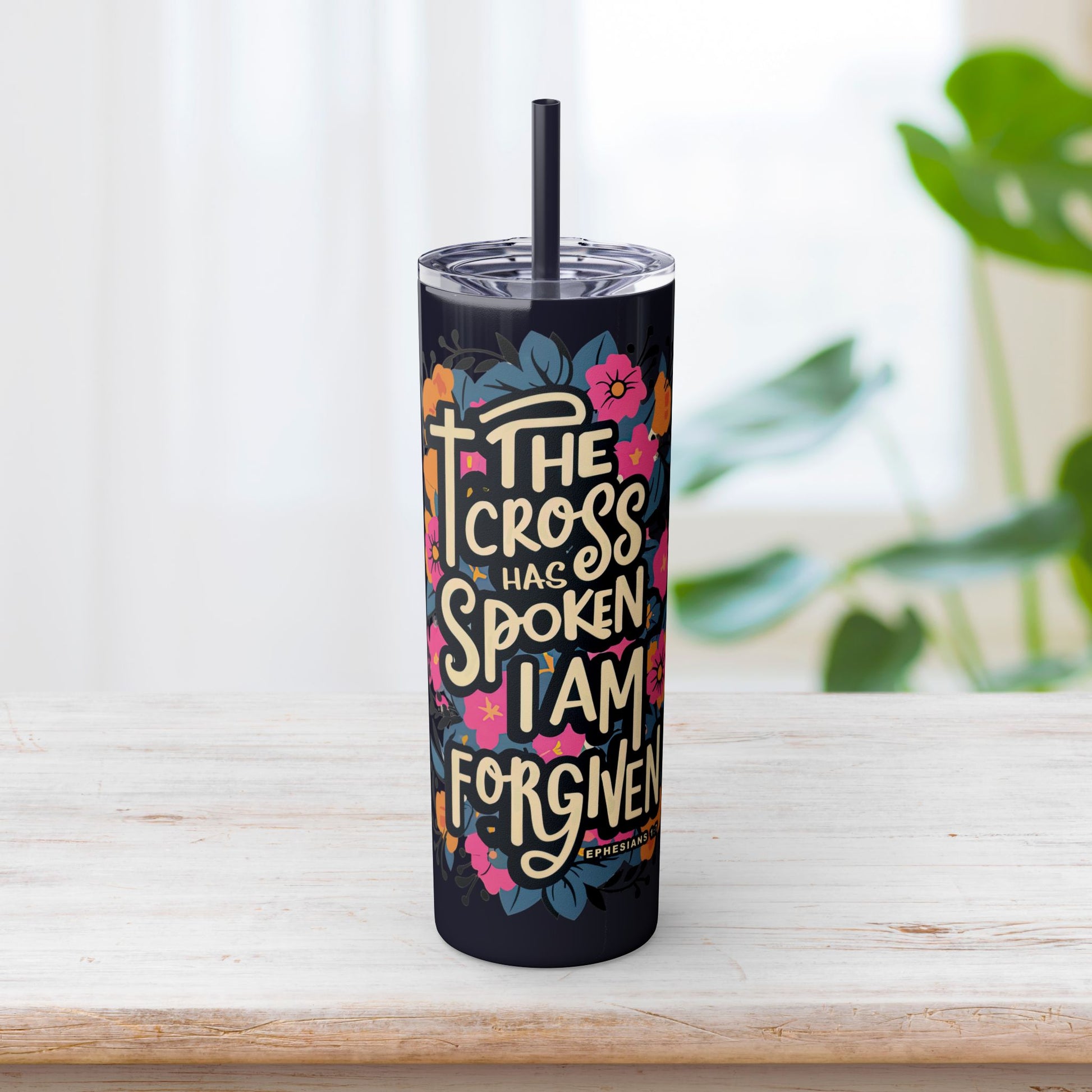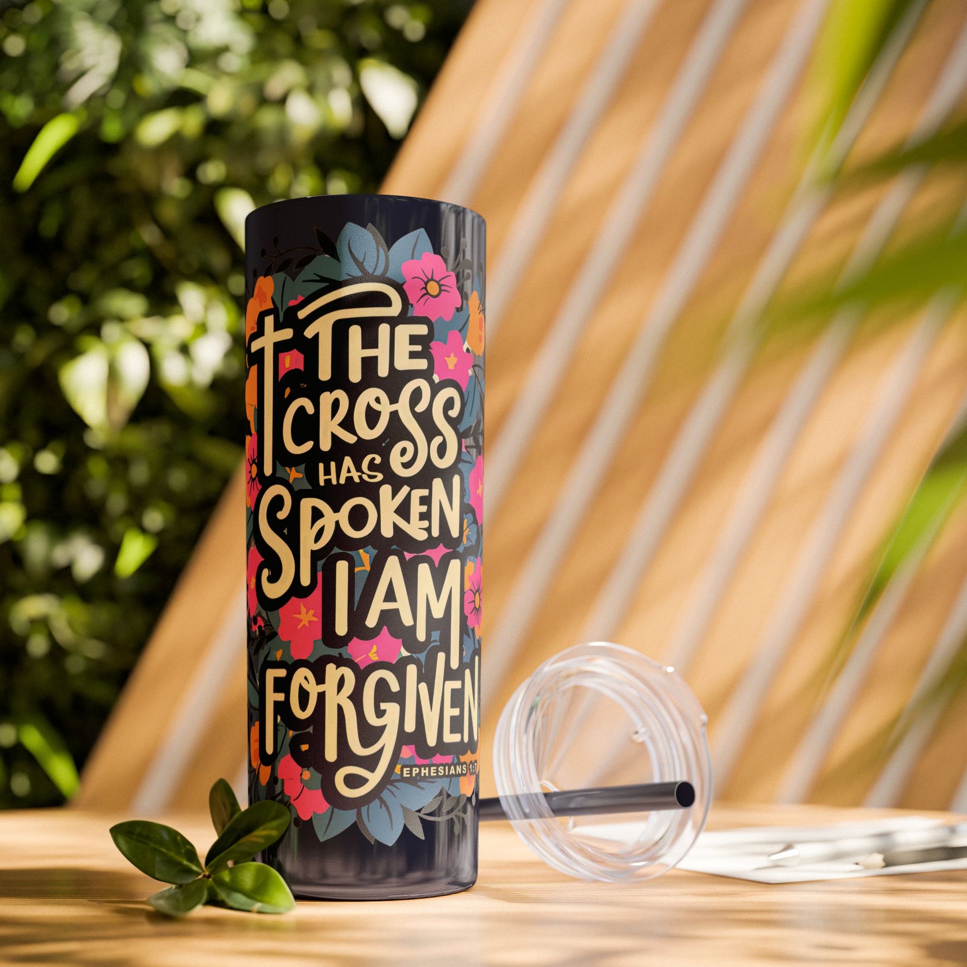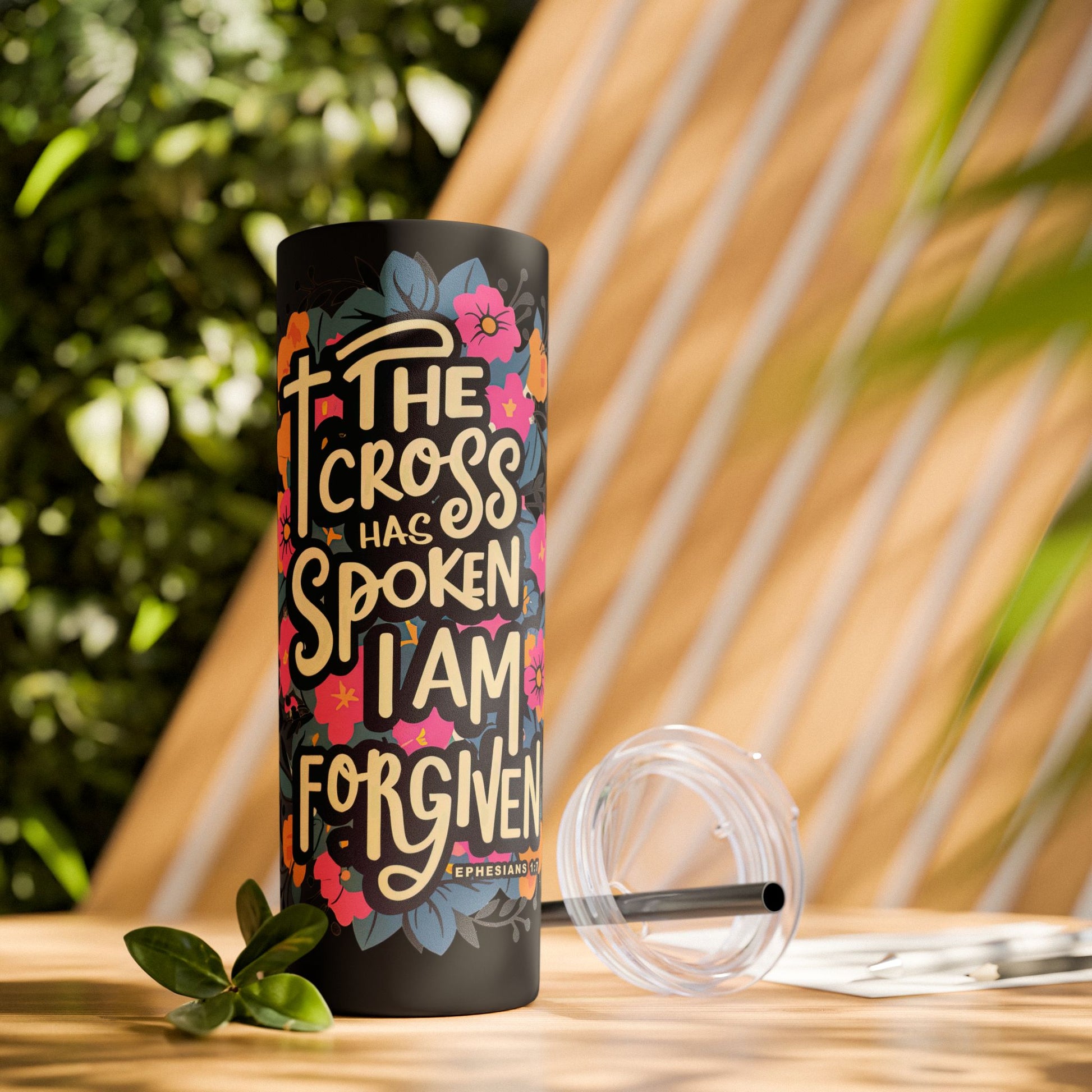 The Cross Has Spoken I Am Forgiven Skinny Tumbler with Straw - 20oz