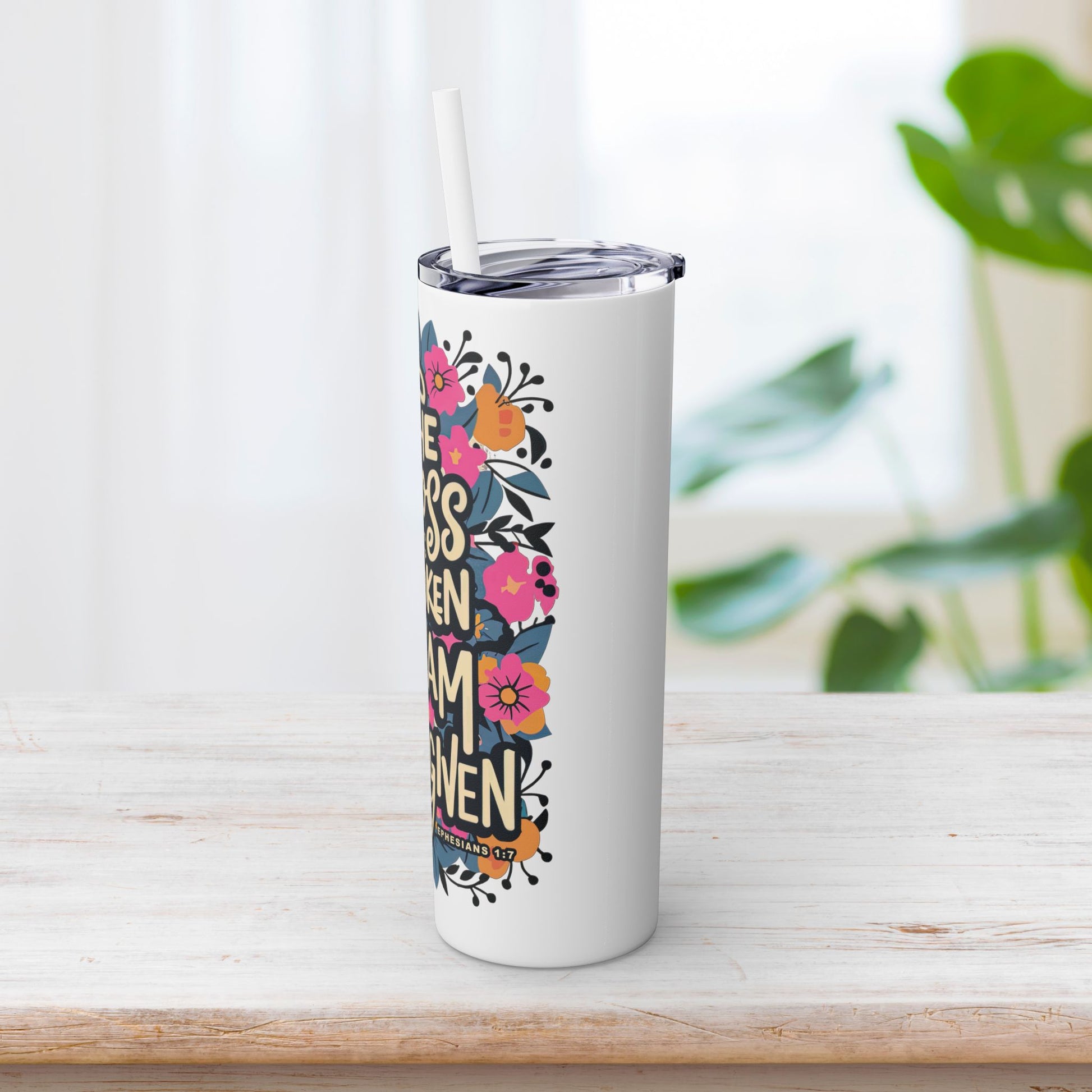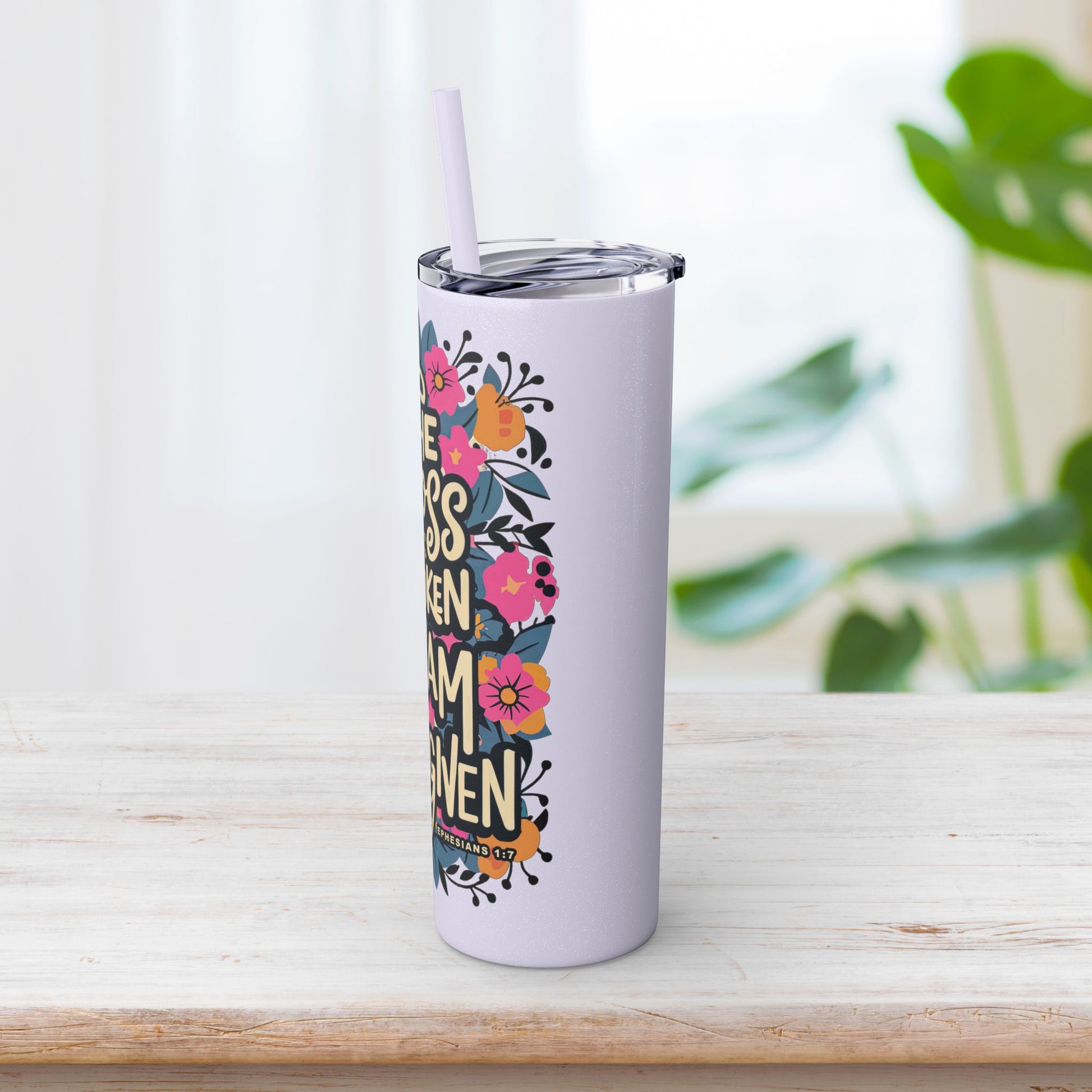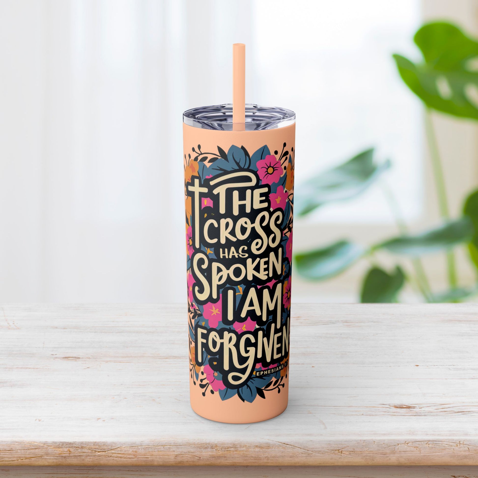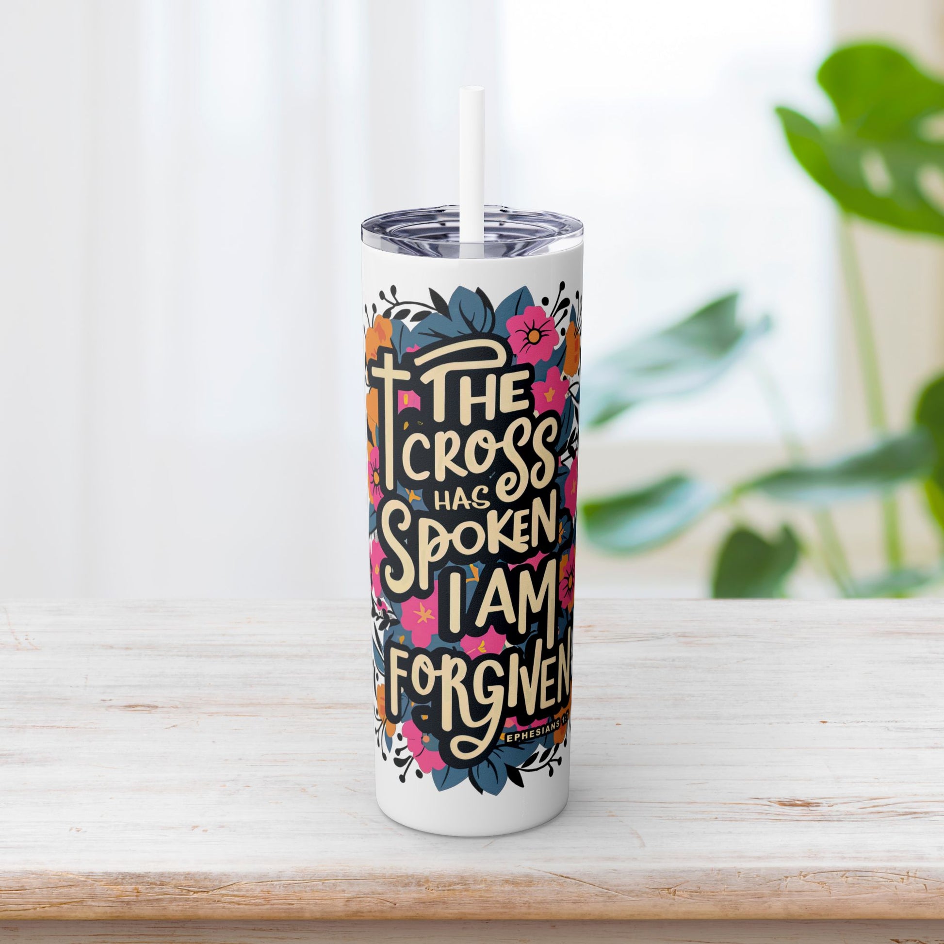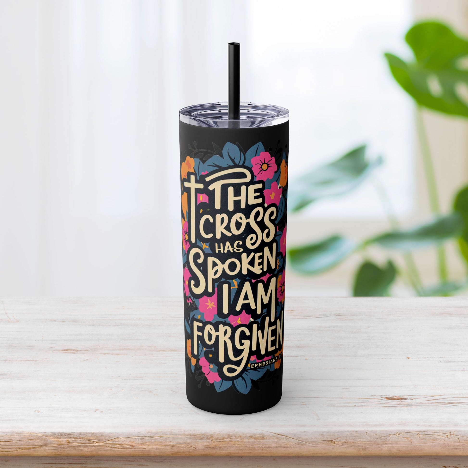 The Cross Has Spoken I Am Forgiven Skinny Tumbler with Straw - 20oz