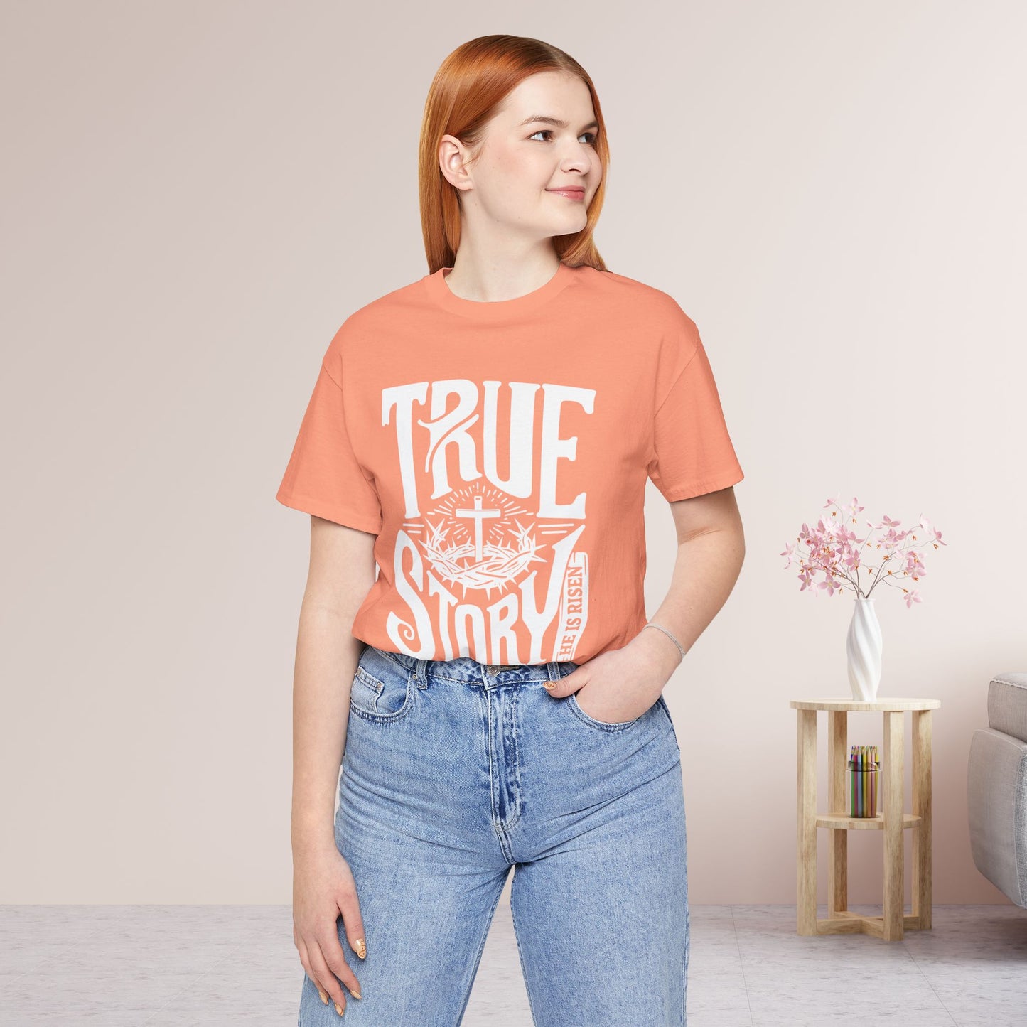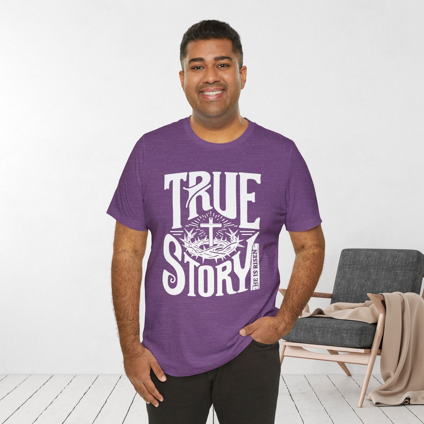 Inspire Faith: Our "True Story: He is Risen" Shirt serves as a powerful reminder of the transformative power of Easter. It's a meaningful way to celebrate the resurrection of Christ and share the message of hope and redemption with others.